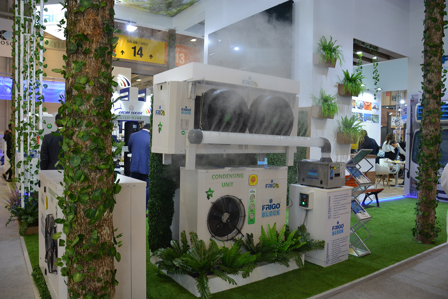 Global ısınma sebebiyle, Avrupa’da Freon gazının kullanımına getirilen ek vergiler ve yüksek fiyatlar sebebiyle, yeni nesil ürünlerde bu gazların kullanımından vazgeçilmekte ve CO2 gibi doğal soğutucu akışkan kullanan cihazların önemi artmaktadır. Bu kapsamda Frigo Block da, CO2’li teknolojiler konusunda Ar-Ge çalışmalarını tamamlamış ve artık üretim ve uygulama yapan bir firma olarak fuarda tamamı karbondioksitli akışkanla çalışan kondenser ünitesi, evaporatör ve transkritik booster cihazlarını sergileyerek, bu yeni nesil cihazlarıyla ziyaretçilerden tam not aldı. Fuar boyunca standında 40’tan fazla farklı ülkeden gelen potansiyel müşterilerle temasta bulunan Frigo Block, tamamen çevreci bir temayla tasarlanan ve uygulanan standıyla da göz doldurdu.